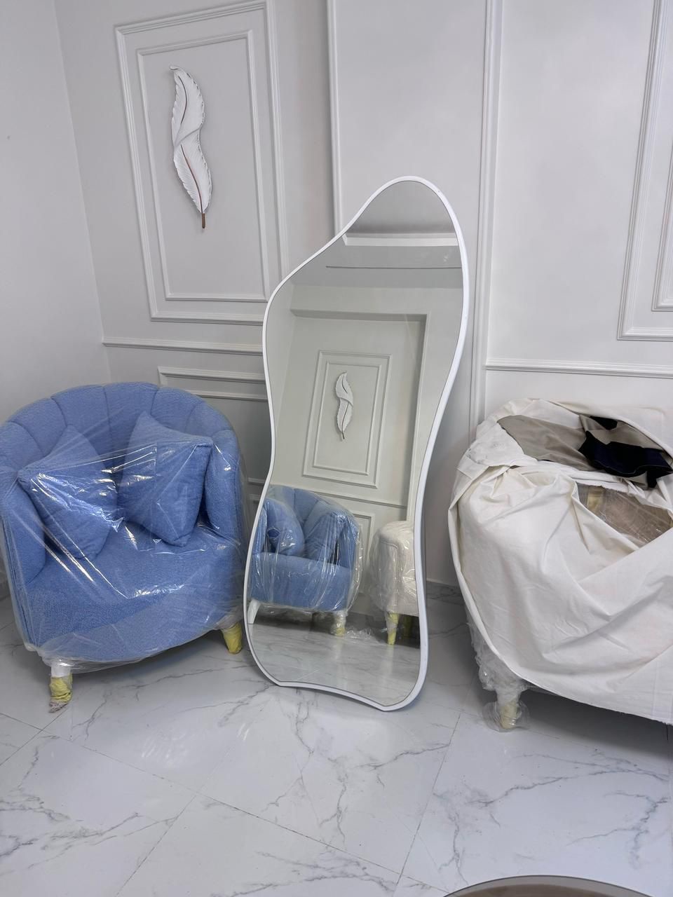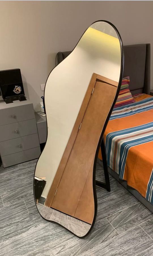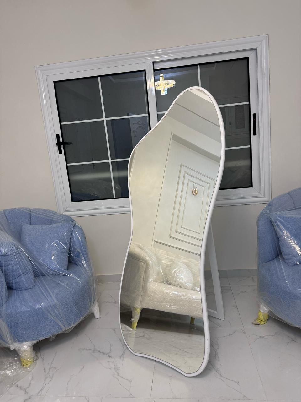 مرآة بتصميم عضوي بسيط وانسيابي، بتدي لمسة مختلفة للمكان بدون ما تبقى جريئة زيادة أو تلفت الانتباه بشكل مبالغ فيه.